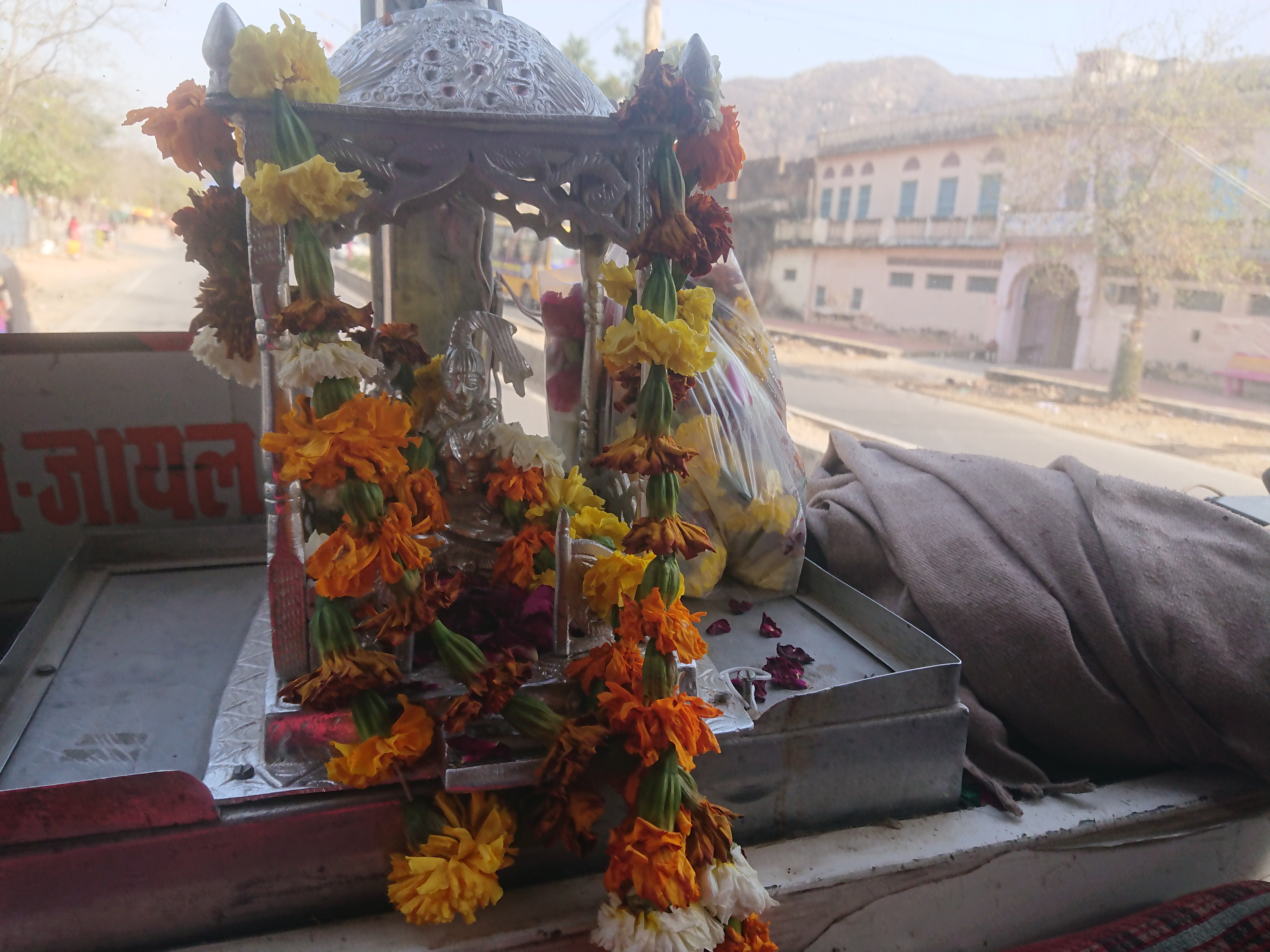 J’ai réservé une chambre d’hôtel à Ajmer et pris le bus en début d’après-midi. Avec un jeune avec qui j’ai pu converser en anglais, on a laissé passer au moins trois bus avant d’en trouver un pas trop bondé. Dans les bus, il y a un espace fermé avec trois ou quatre places assises à côté du chauffeur, séparé du reste du bus par une vitre et dans lequel on entre par une espèce de sas. J’ai eu l’honneur d’y être placé, ce qui m’a permis de bien voir le paysage. Tout le monde faisait des vidéos, j'ai donc sorti mon téléphone sans complexe mais impossible de les téléverser ce soir, la connexion internet est vraiment merdique. Demain ?