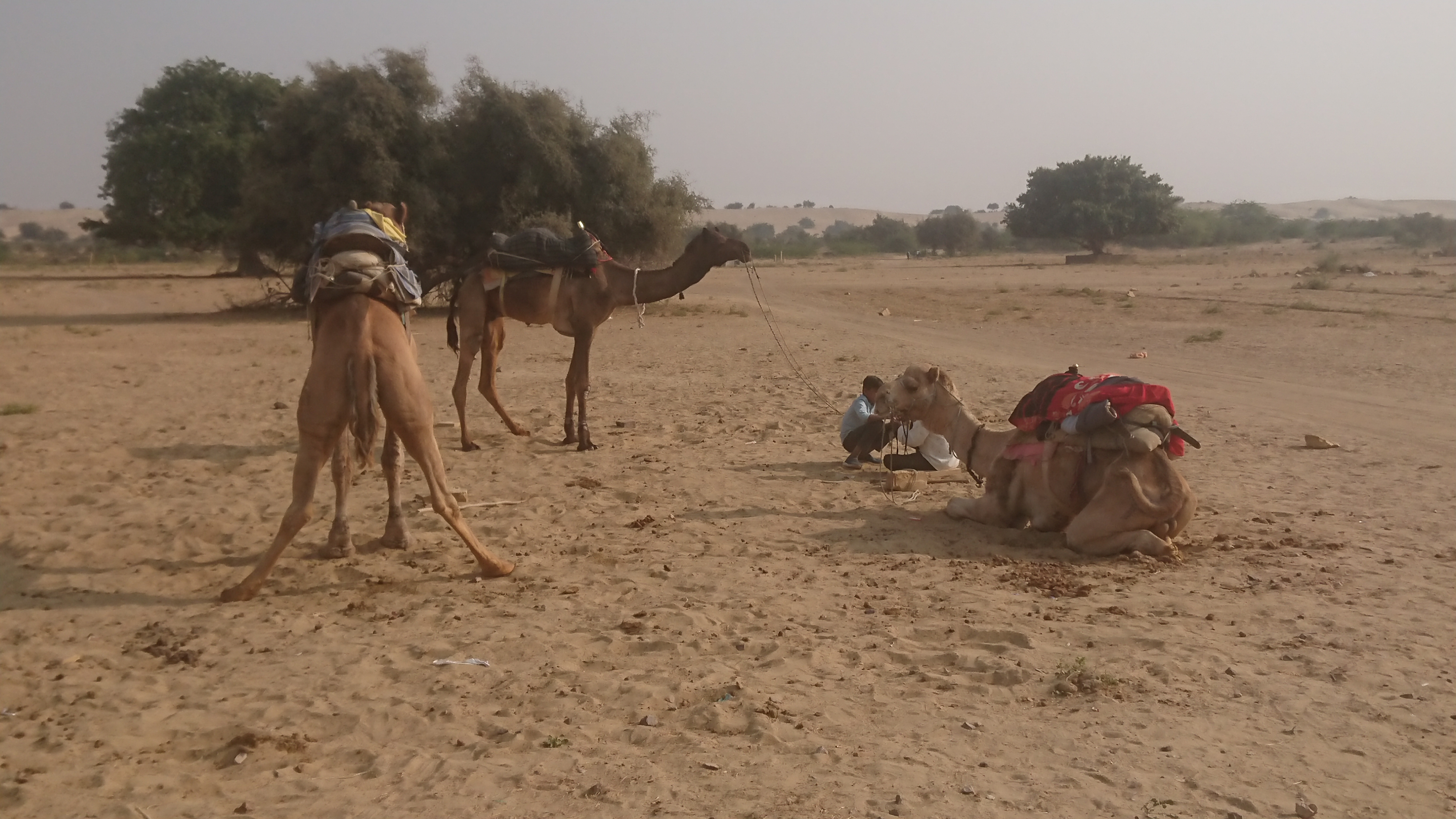Hier, les "camel men" sont venus me chercher en début d'après-midi pour passer la nuit dans le désert. Nous sommes passés remplir la jeep avec deux jeunes couples : des Indiens de Bangalore et des Néerlandais qui font le tour du monde pendant une année sabbatique.