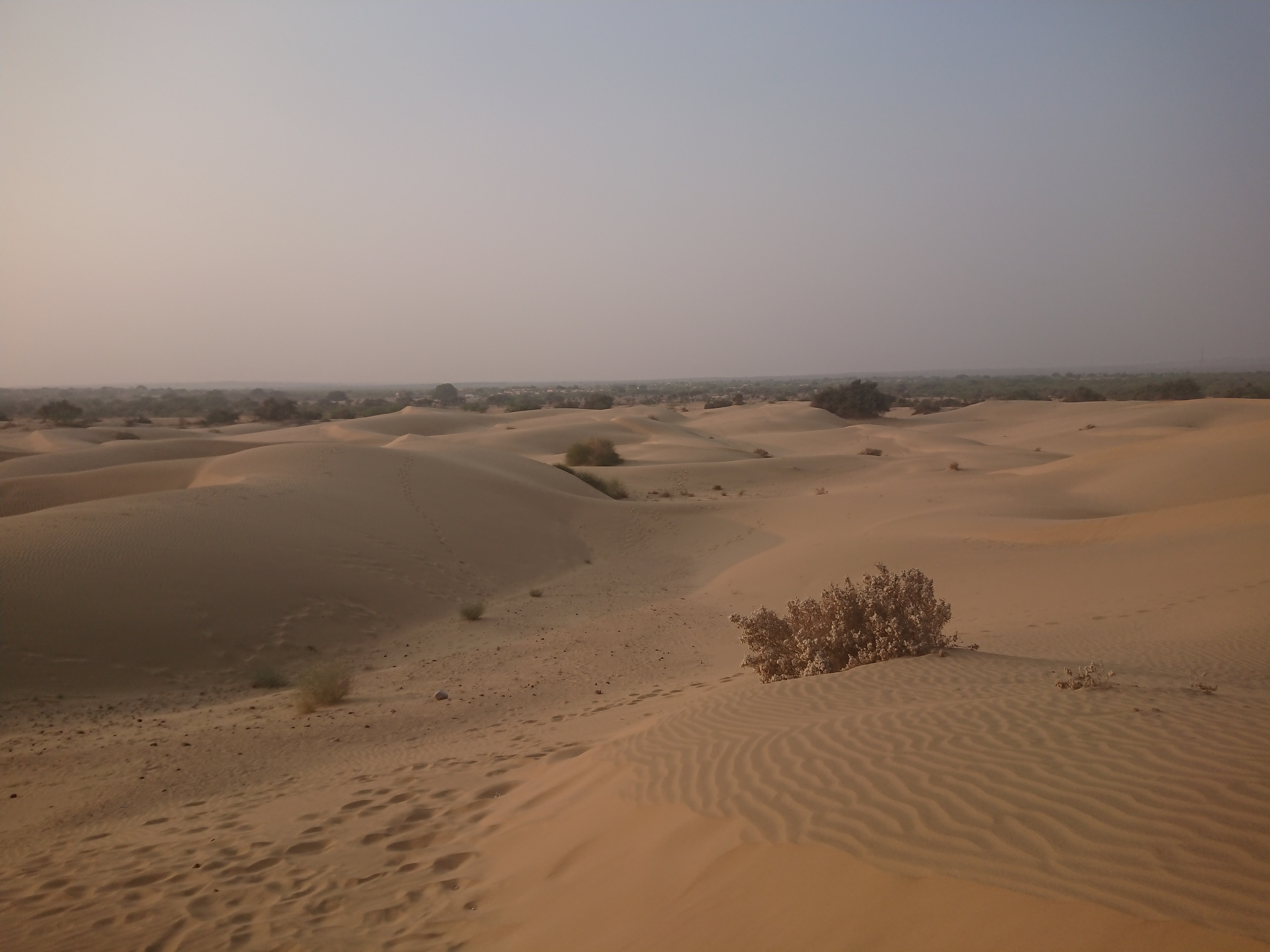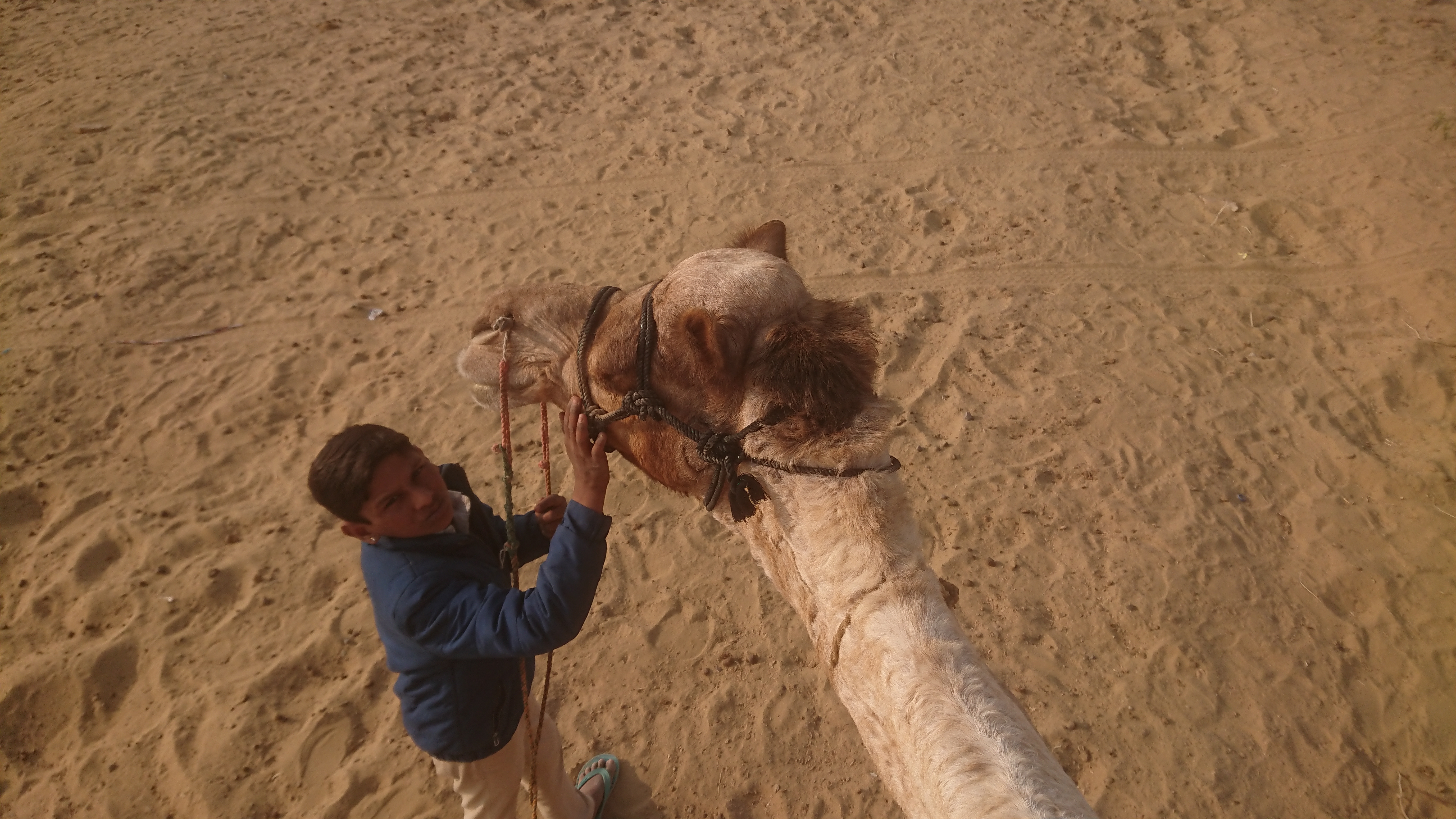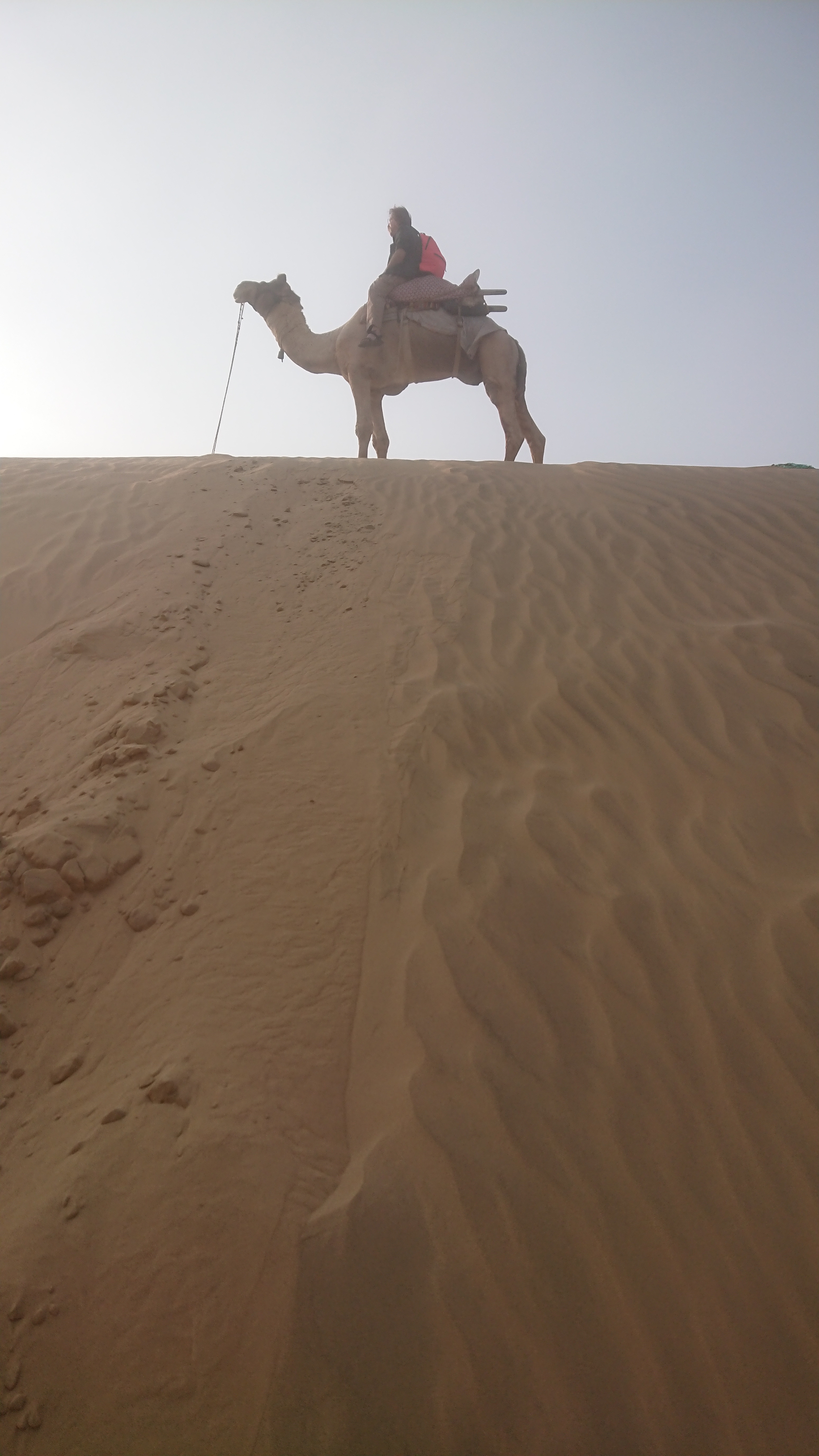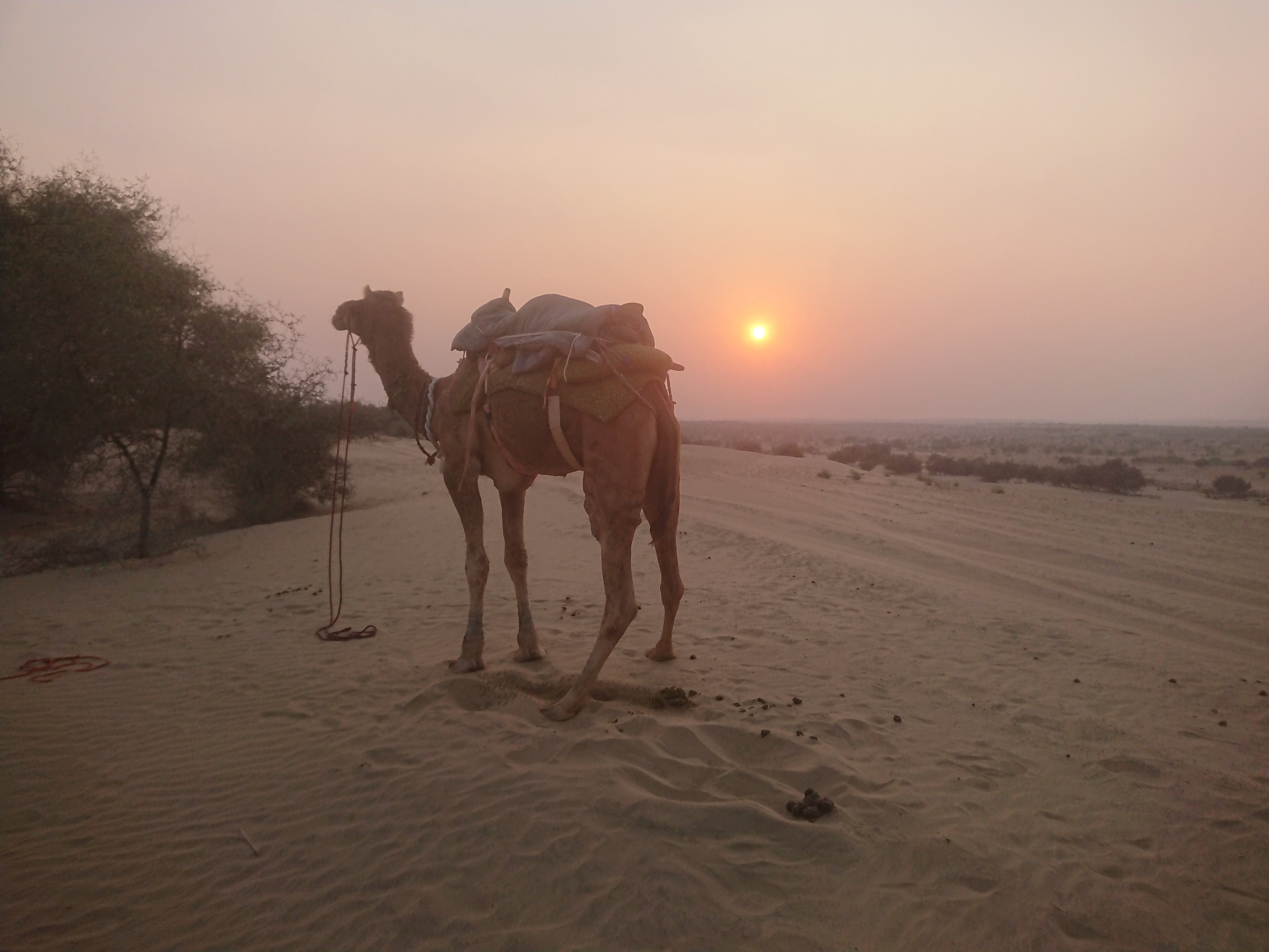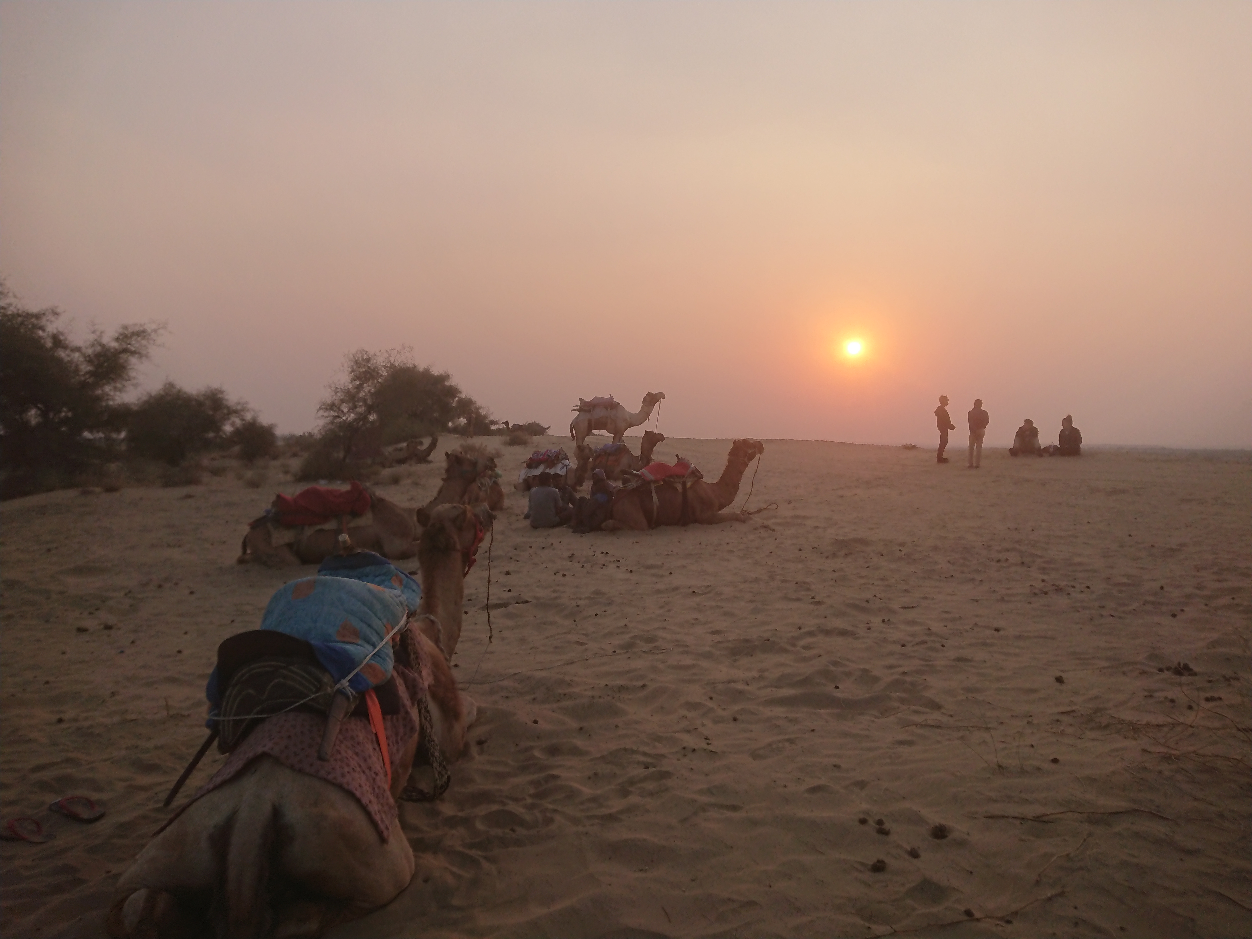 Le but du voyage était une dune de sable où nous avons attendu le coucher du soleil. Au retour, nous avons assisté à un concert de musique et à des danses rajasthani, assis sur des charpaïs autour du feu, avant un repas en commun.