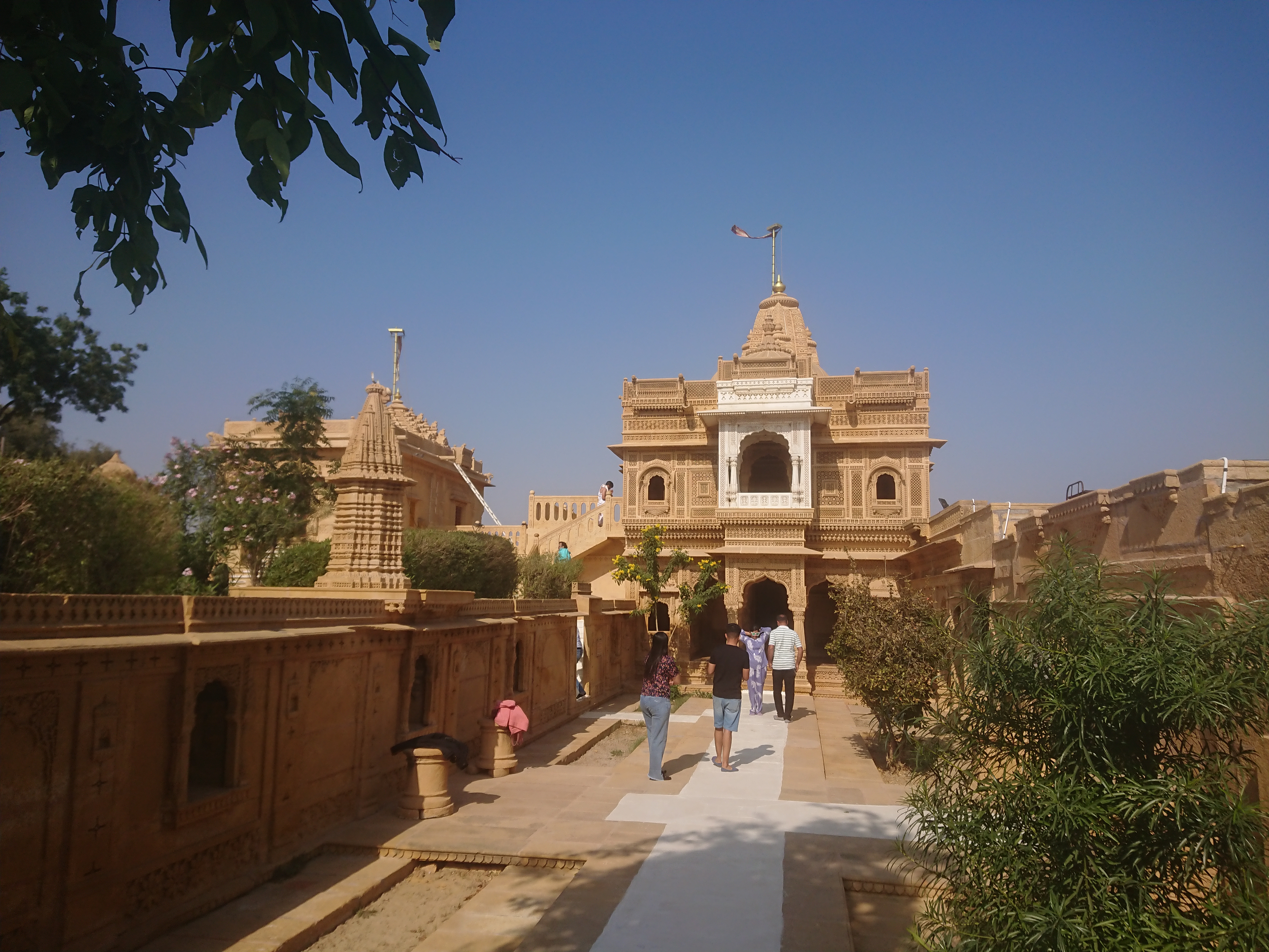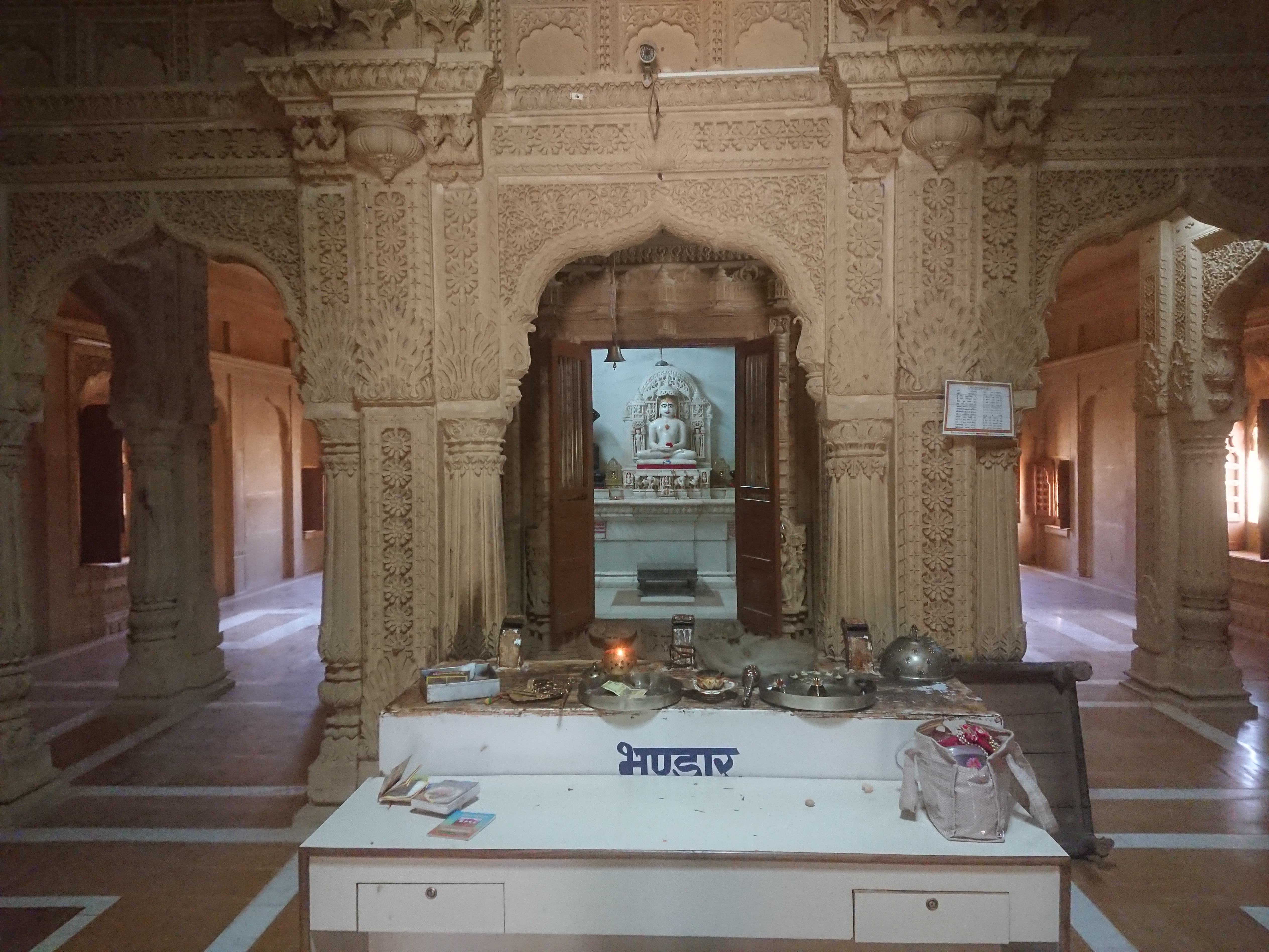 Je suis d’abord allé voir un temple jaïn[1] au bord d’un lac artificiel malheureusement à sec. Contrairement aux temples hindous très colorés et avec beaucoup de fidèles, les temples jaïns sont plus austères, sans décorations, juste de la pierre nue très ouvragée. Il faut dire que religion athée (sans dieu), ils n’ont personne à vénérer! Les sols sont très propres : adeptes de la non-violence, ils balaient le sol devant eux pour éviter d'écraser un être vivant, aussi petit soit-il[2]. Camarades végans, encore un effort... Malgré le côté décalé et hors du temps de cette religion, elle compte encore près de 1% de fidèles au Rajasthan, bien plus que dans le reste de l'Inde