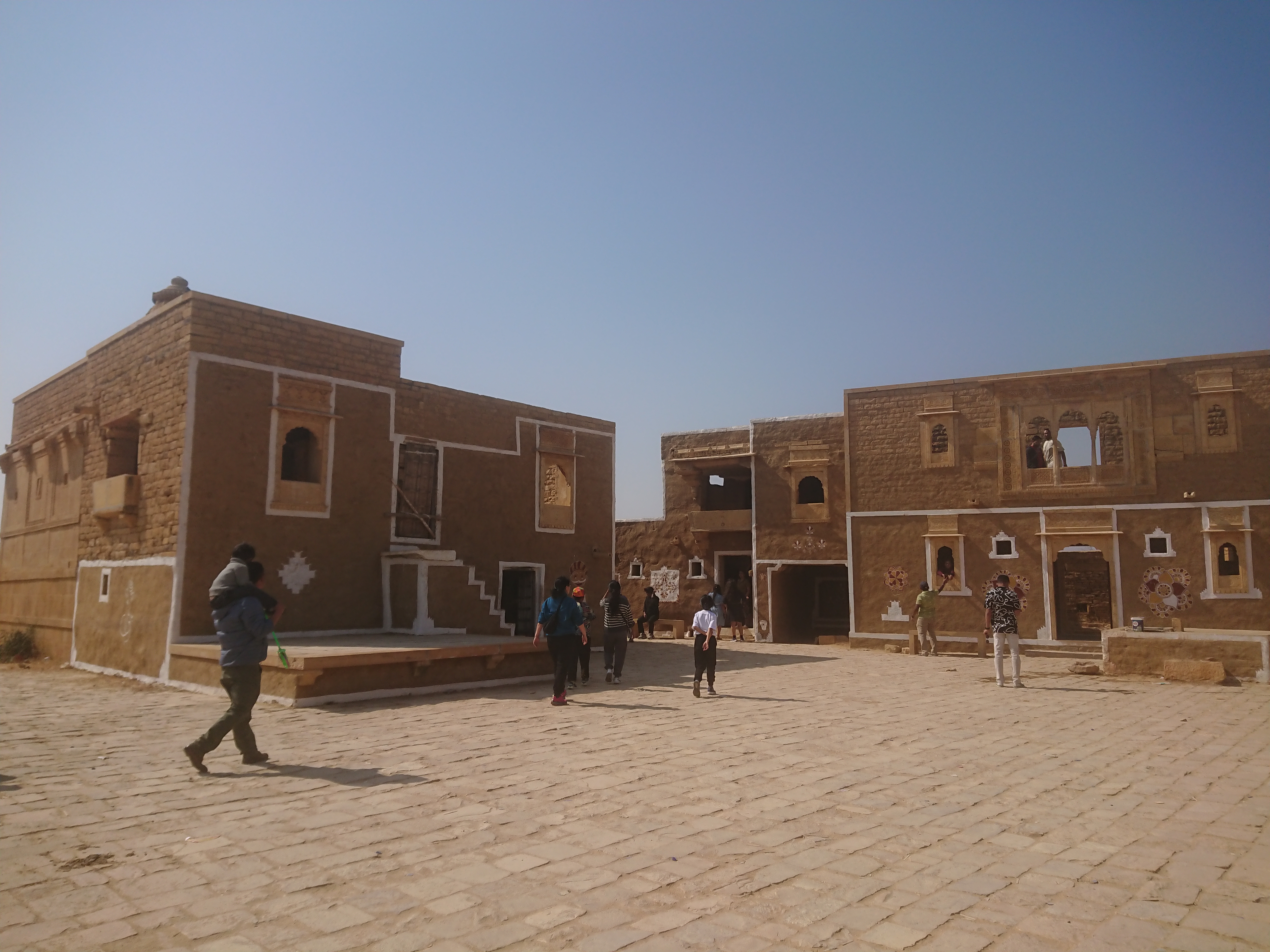 Le but de la promenade était d’aller à Khuldara[3], un village brahmane abandonné au début du 19ème siècle après 600 ans d’existence sans que l’on ait d’explications : sécheresse,tremblement de terre ou persécutions des autorités de Jaisalmer. Il reste quelques maisons intactes intéressantes à voir.