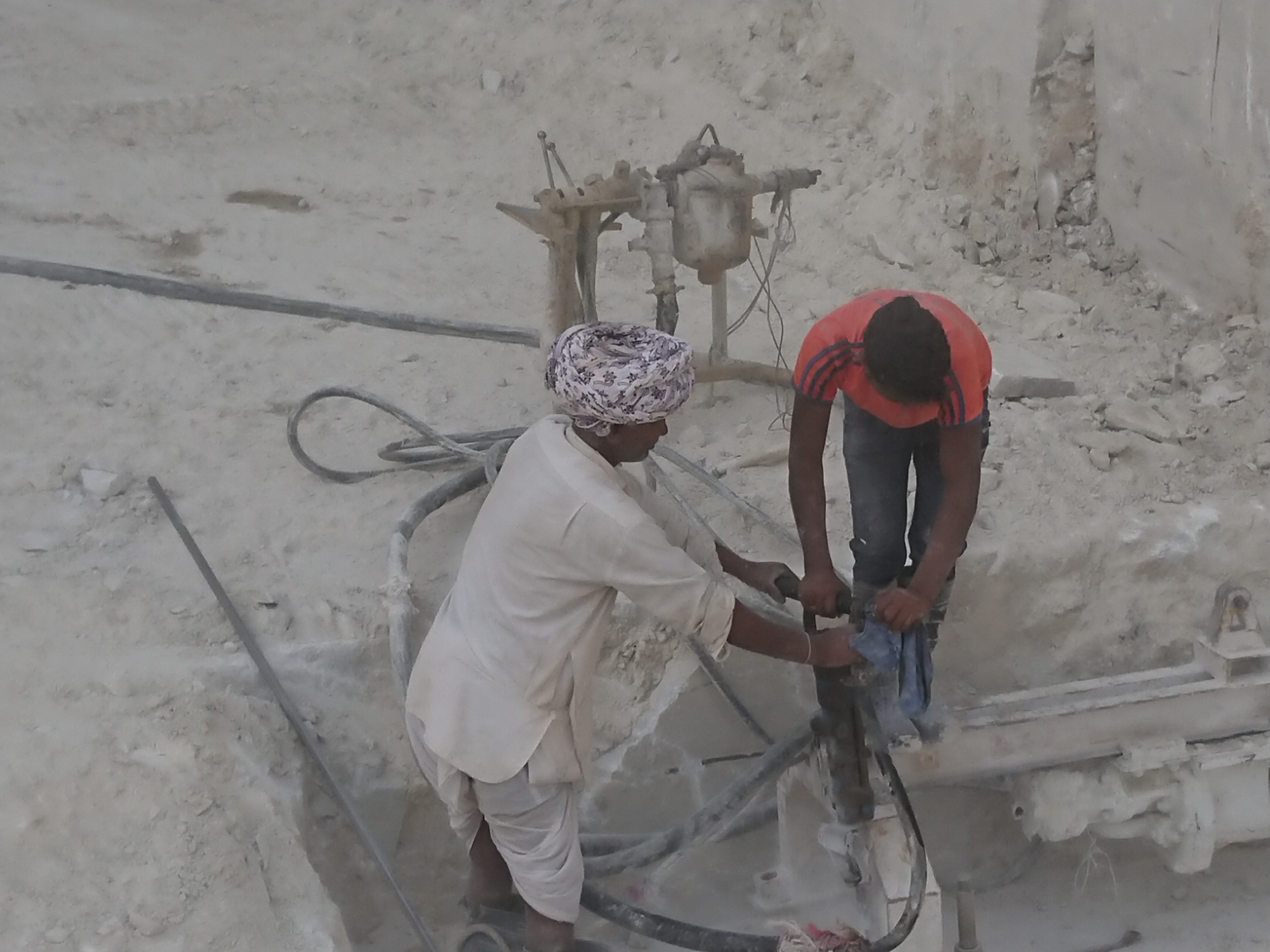 La carrière travaille 24 heures sur 24. Les horaires de l’équipe de jour que dirige l’oncle de Naveen sont 9h-18h avec une heure de pause à 13 heures. Les salaires journaliers minimum au Rajasthan vont de 297 INR (3,E €) pour un ouvrier semi qualifié à 359 INR (3,9 €) pour un ouvrier hautement qualifié.