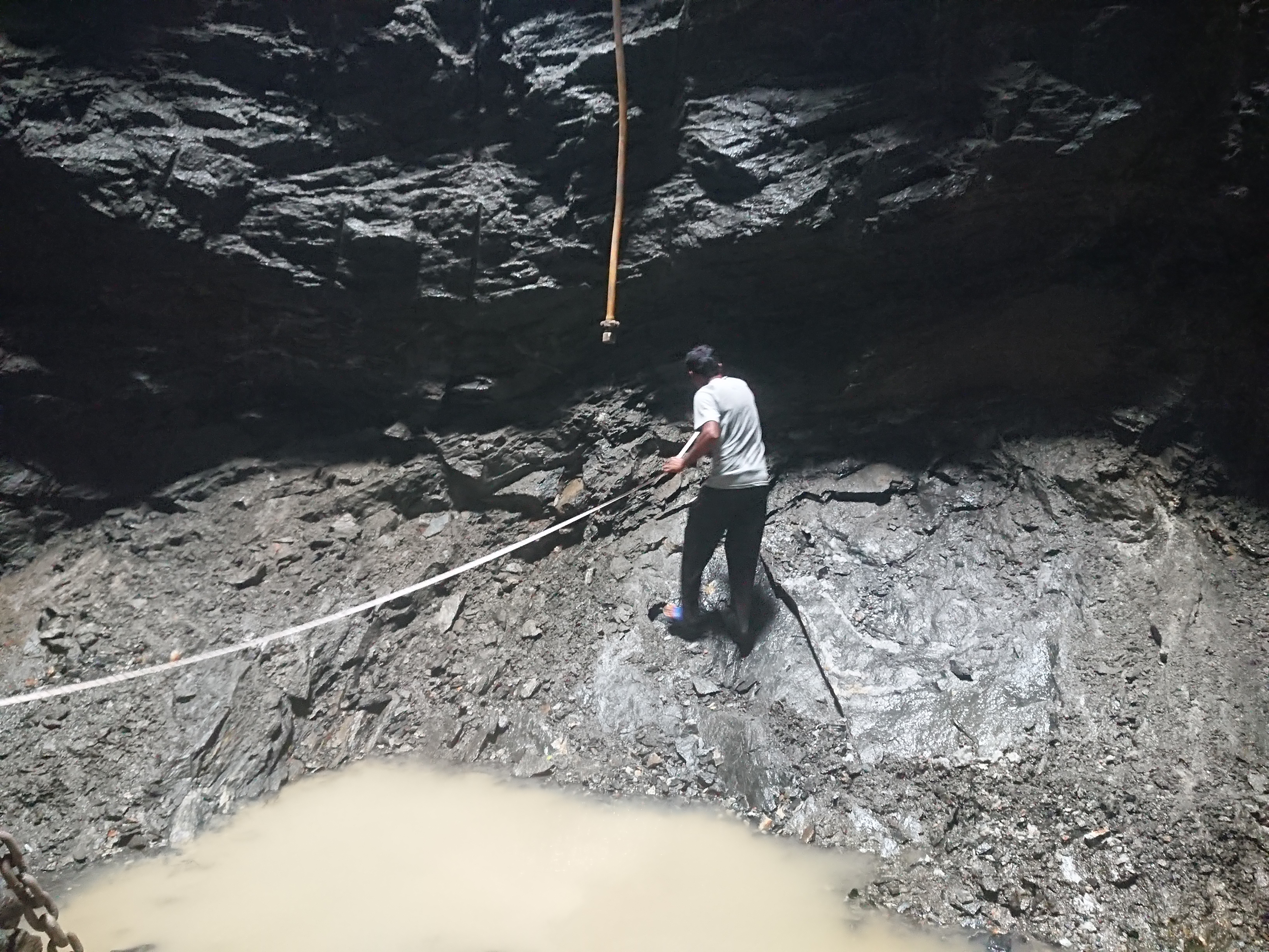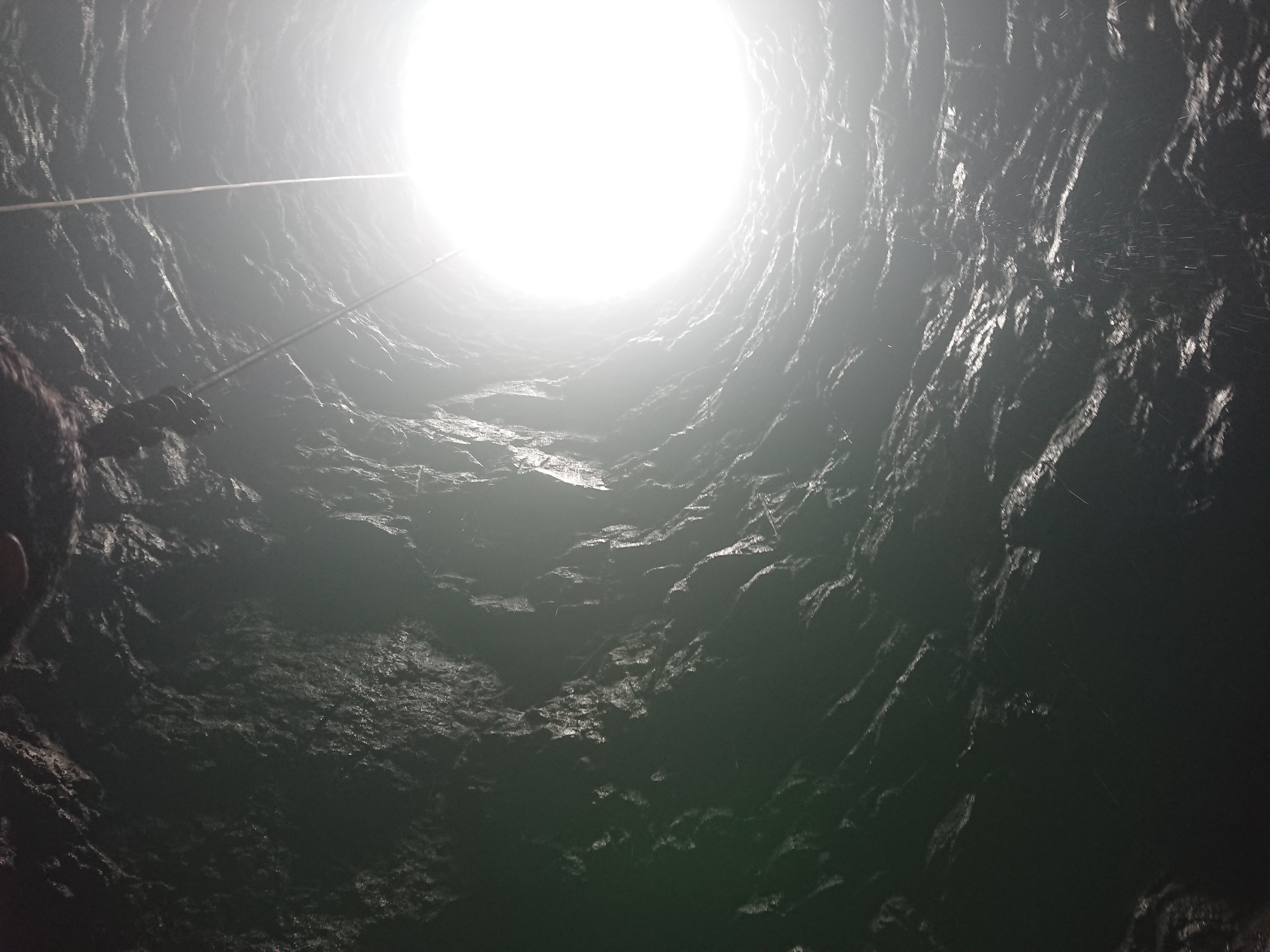 Nous sommes revenus à la ferme pour aller voir le chantier du puits. Nous sommes descendus dans la benne au fond pour qu’ils prennent des mesures avant de céder la place aux ouvriers équipés de barres à mine, de marteaux-piqueurs et d’explosifs.