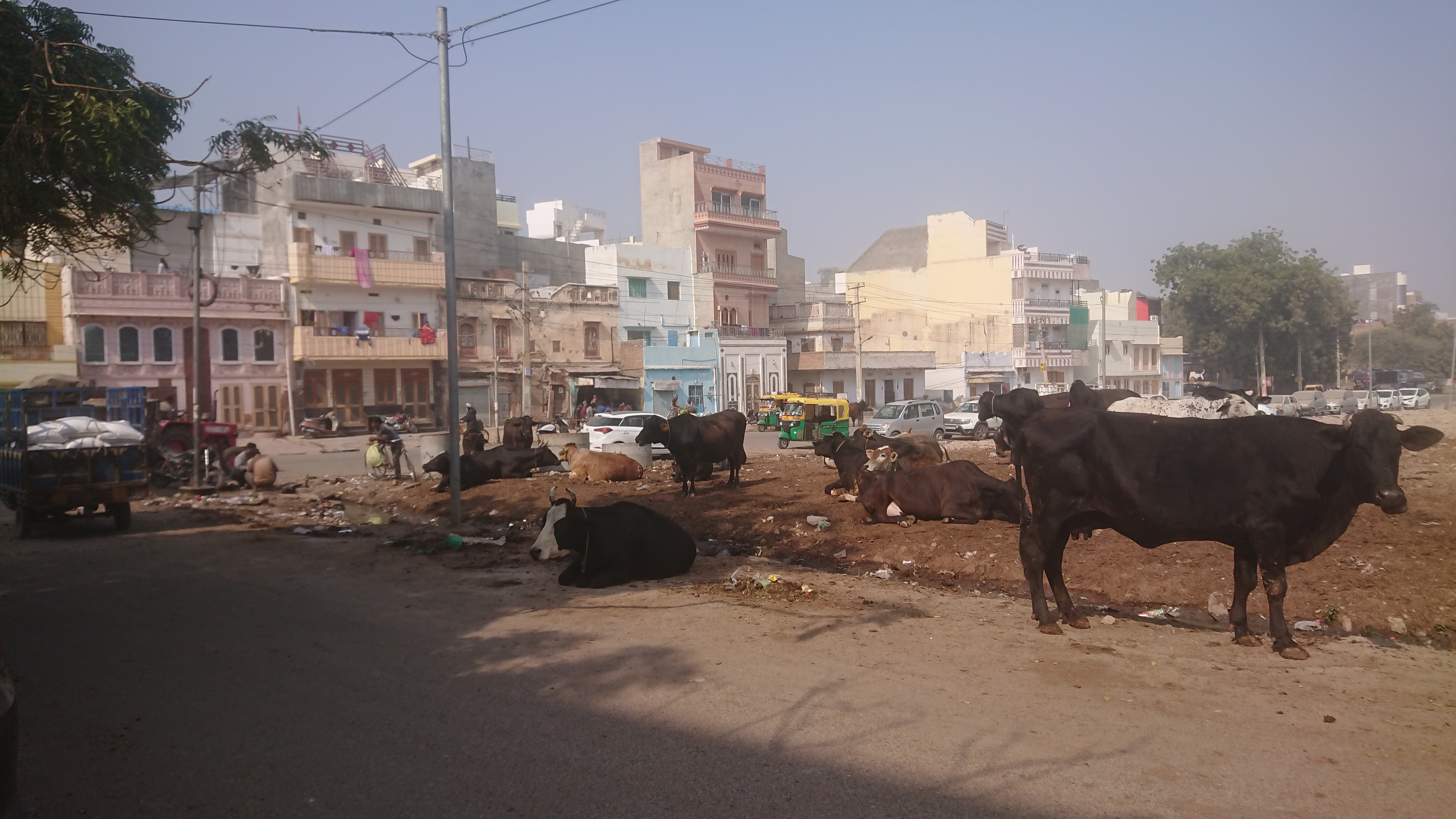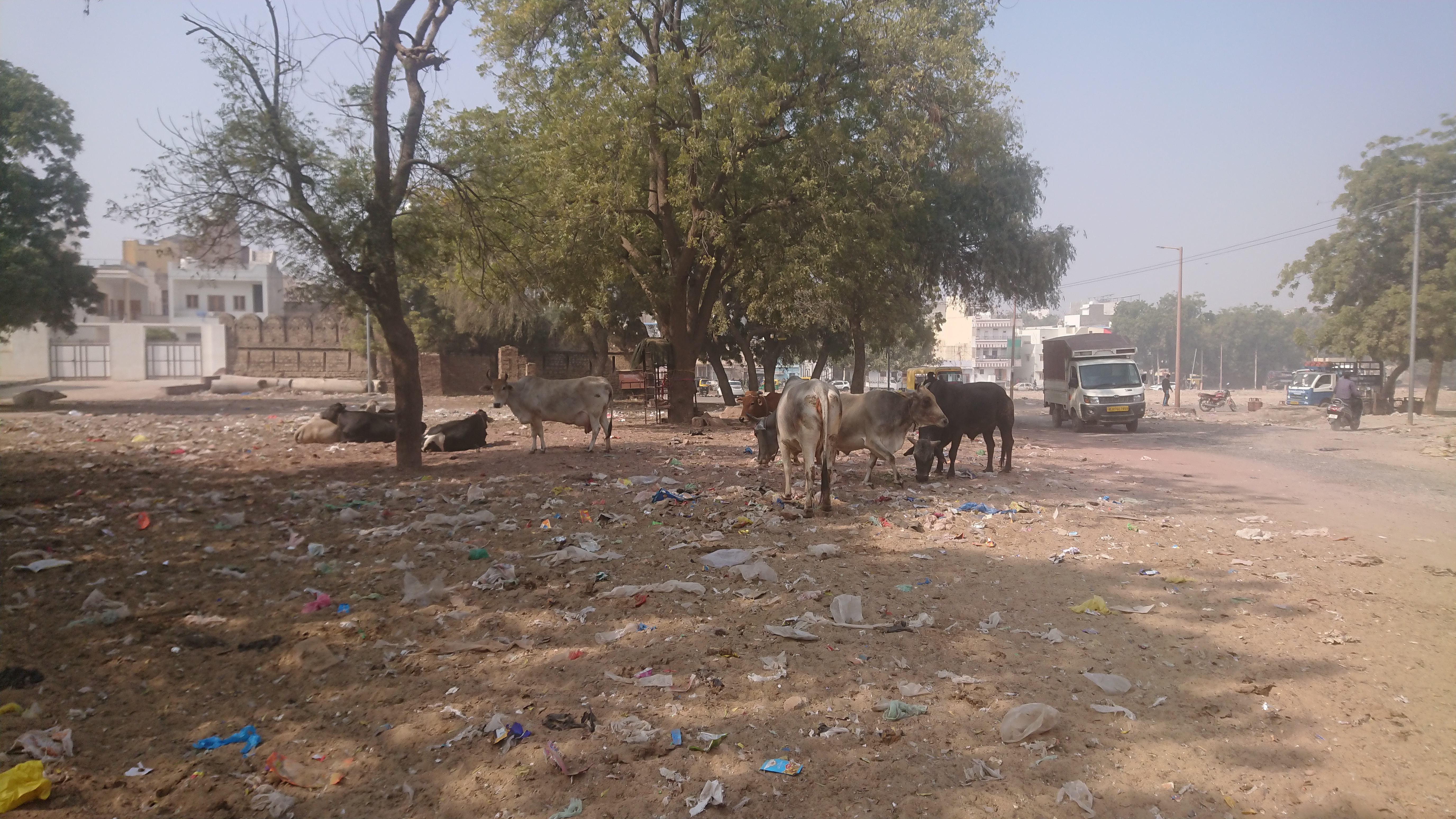 Ce que je retiens de la journée, ce sont les ordures qui traînent partout : en ville mais aussi dans les villages et au bord de toutes les routes. Les vaches, les chèvres et les chiens errants s'occupent des matières organiques et, à la fin,  il ne reste pratiquement plus que du plastique sous toutes ses formes. On voit parfois des femmes, bien sûr, balayer les trottoirs et faire des gros tas mais je ne suis pas sûr qu'ils soient toujours ramassés et traités. D'après Chatgpt, l’Inde génère environ 3,5 millions de tonnes de déchets plastiques par an et environ 40 % (soit 1,4 million de tonnes/an) ne sont pas collectés correctement. Celà parait énorme mais l'Europe, avec 3 fois moins d'habitants, en produit plus de 29 millions, soit plus de six fois plus. Même, si chez nous, seulement moins de 5% de ces déchets ne sont pas traités correctement, cela représente 1,5 millions de tonnes par an, un peu plus que toute l'Inde.
