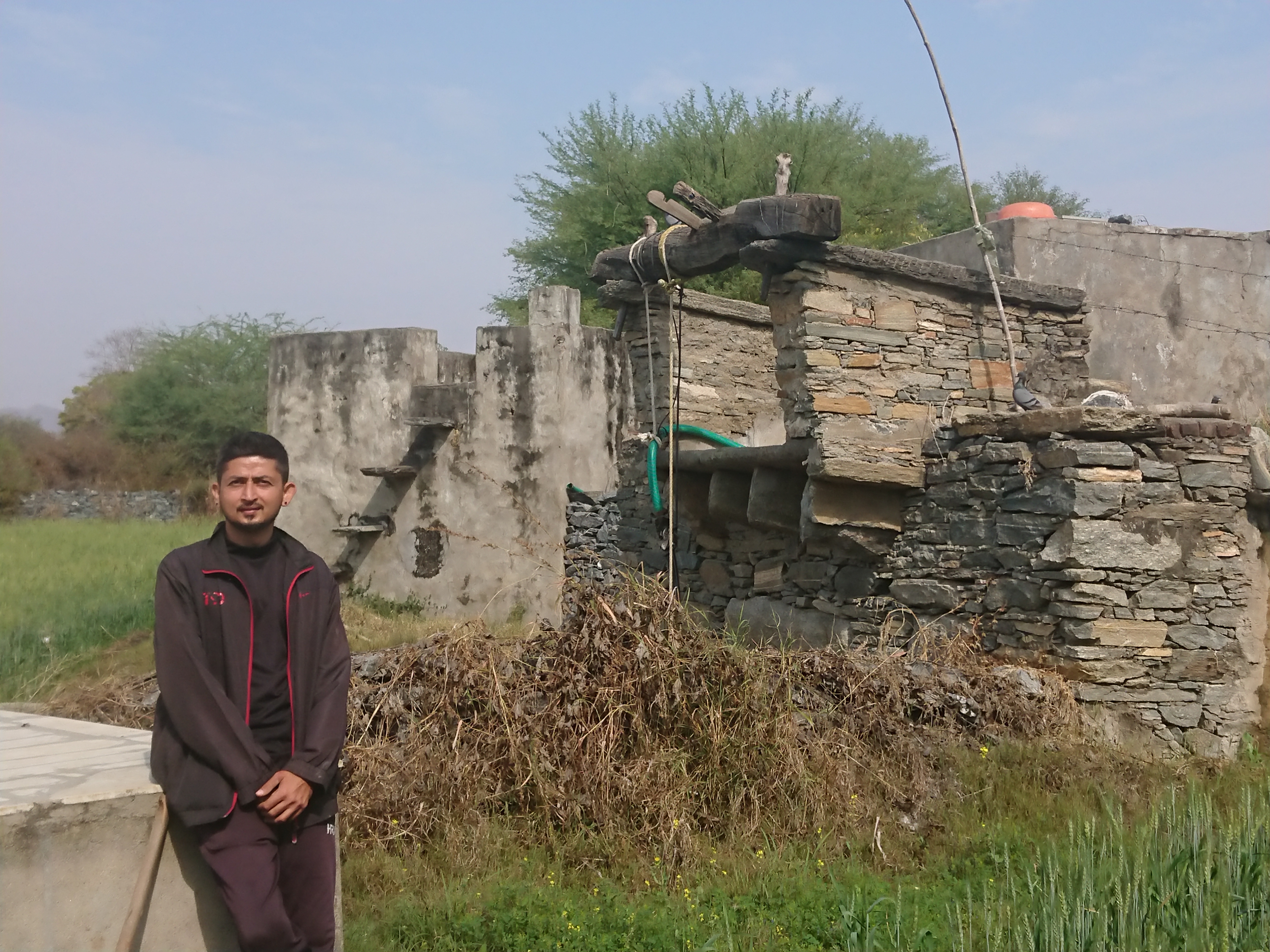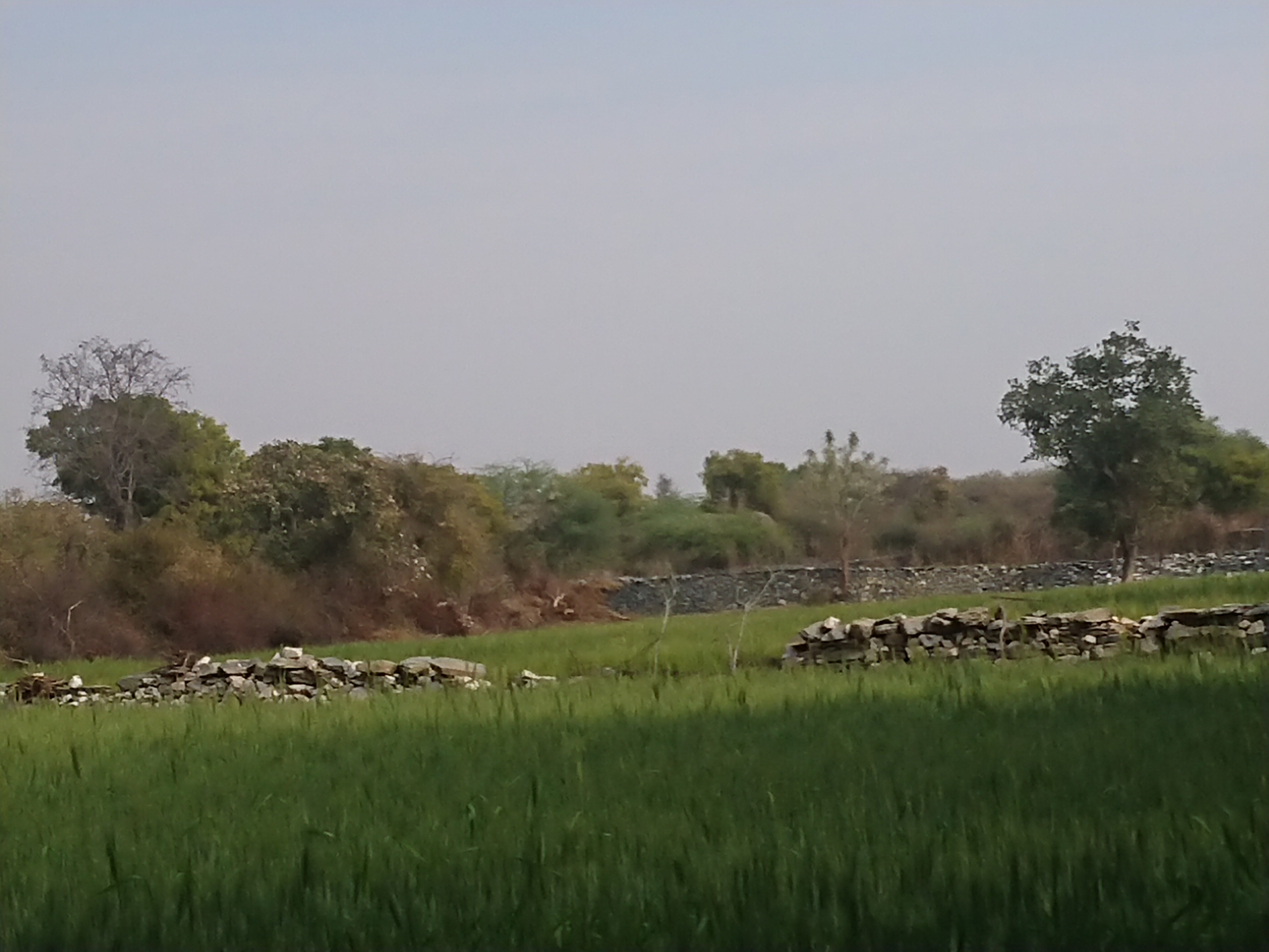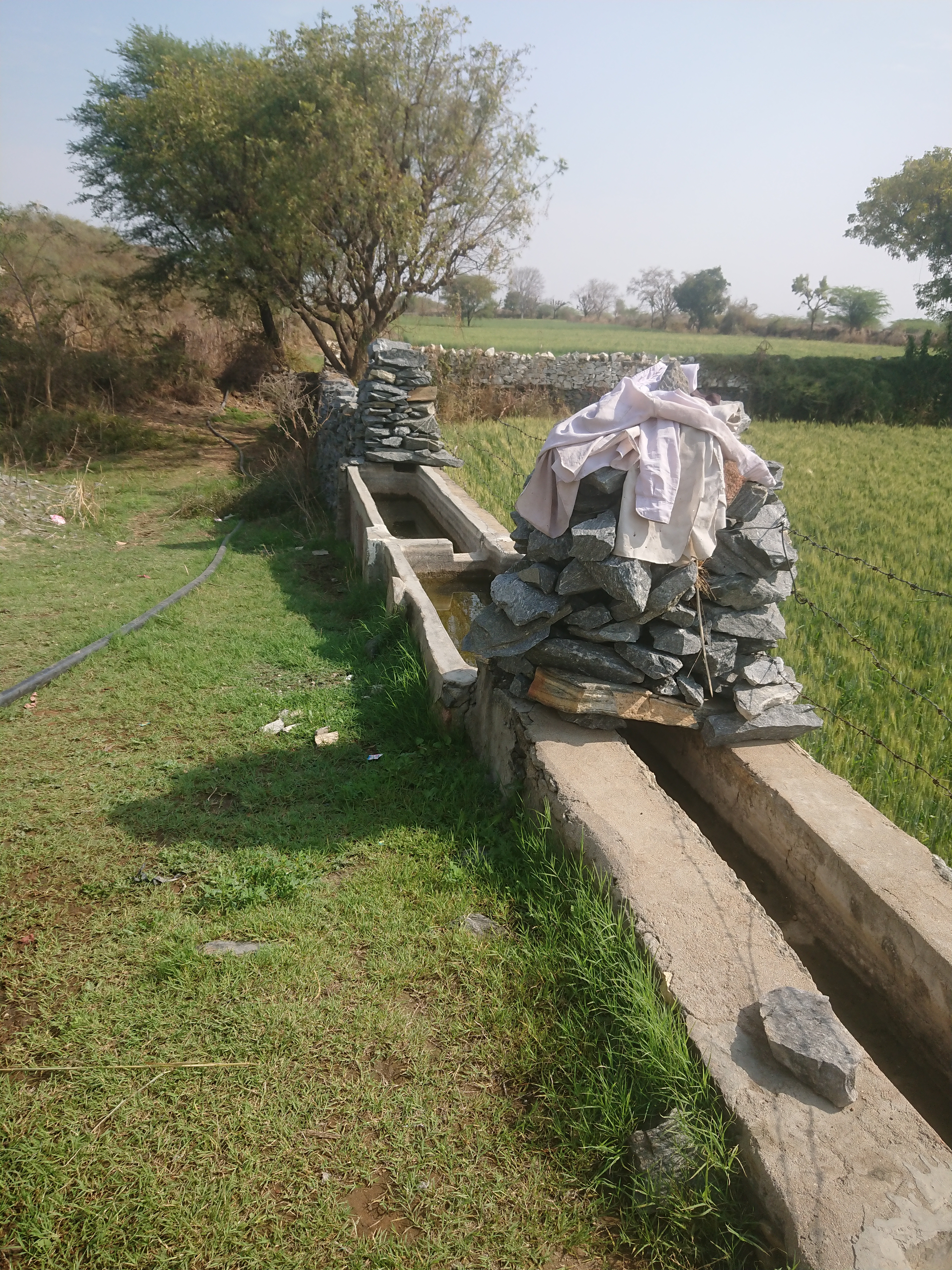 La troisième zone est divisée en trois sections de taille à peu près égale, séparées par des murs en pierre sèche suffisamment hauts (1,50 m) pour empêcher l’entrée des nilgaïs la nuit. On y trouve du blé dans les deux premières sections et du maïs dans la dernière.