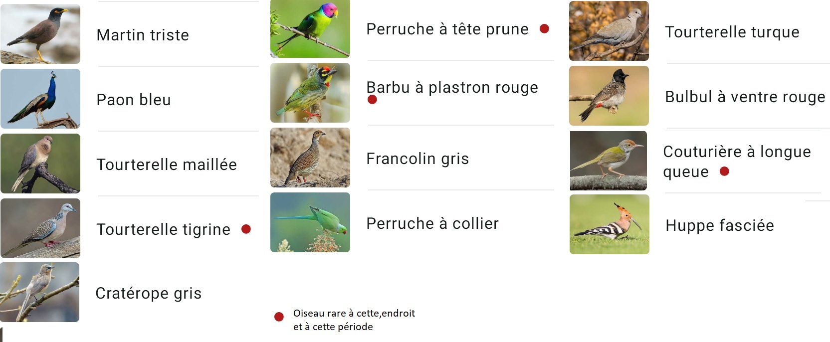 Pendant que Naveen s’affairait à mettre en œuvre sa motobineuse, j’ai terminé de nettoyer les planches des "carrot grass", parthénium matricaire en bon français. D’après Naveen, cette plante tropicale, toxique et envahissante, aurait été introduite en Inde avec l’aide des Américains pendant la guerre indo-pakistanaise de 1971. Je me suis ensuite attaqué à biner les deux planches d’oignons sous les "Léon, Léon", le cri de guerre caractéristique des paons qui aiment venir picorer le champ de maïs un peu plus loin. Ca m'a donné l'idée d'identifier les oiseaux que j'entendais avec l'application Merlin, vous avez le résultat en image.
