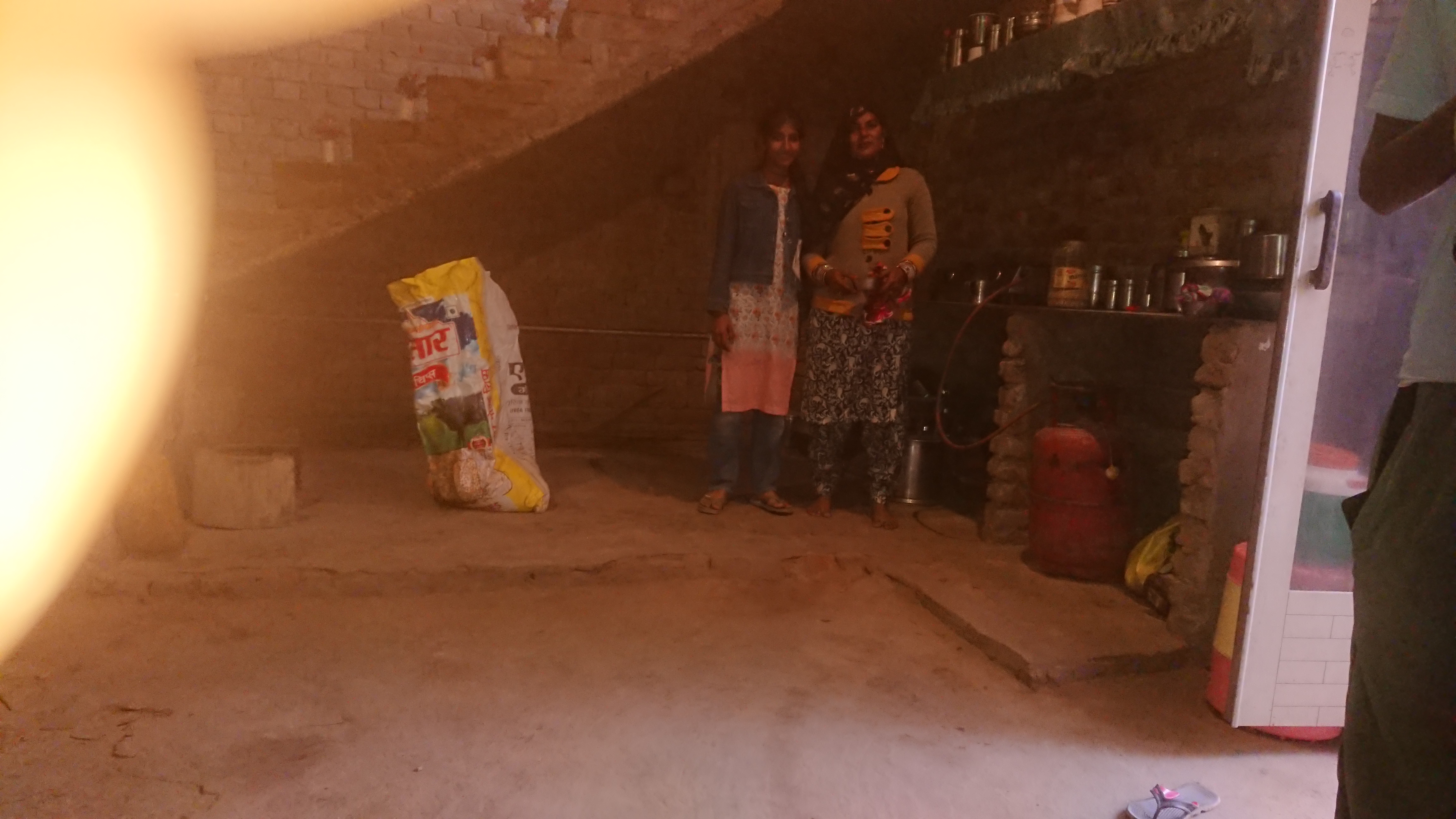 La maison est située sur l'une des places du village, en face du plus grand des quatorze temples. Située au fond d’une petite cour, la porte d’entrée, seule source de lumière de la maison, donne sur la pièce principale d’environ 20 m². Sur la droite, un escalier monte vers ce qui ressemble à un grenier. Par terre, au pied de cet escalier, se trouve le foyer à bois pour la cuisine. La pièce ne comporte aucun meuble, à part un charpaï. Sur le mur du fond, une porte mène à une deuxième pièce, mais je n’ai aucune idée de sa taille ni de sa fonction.