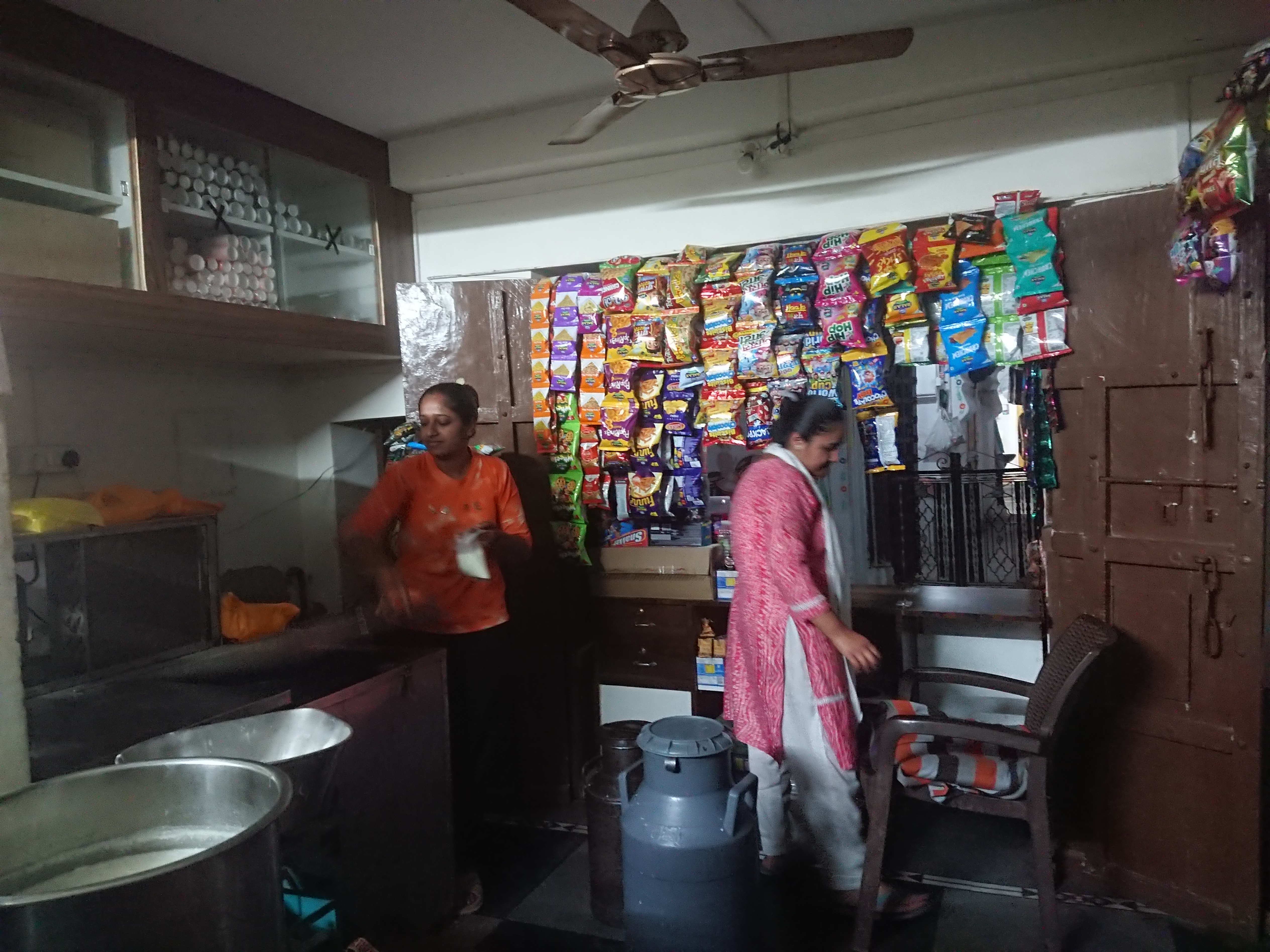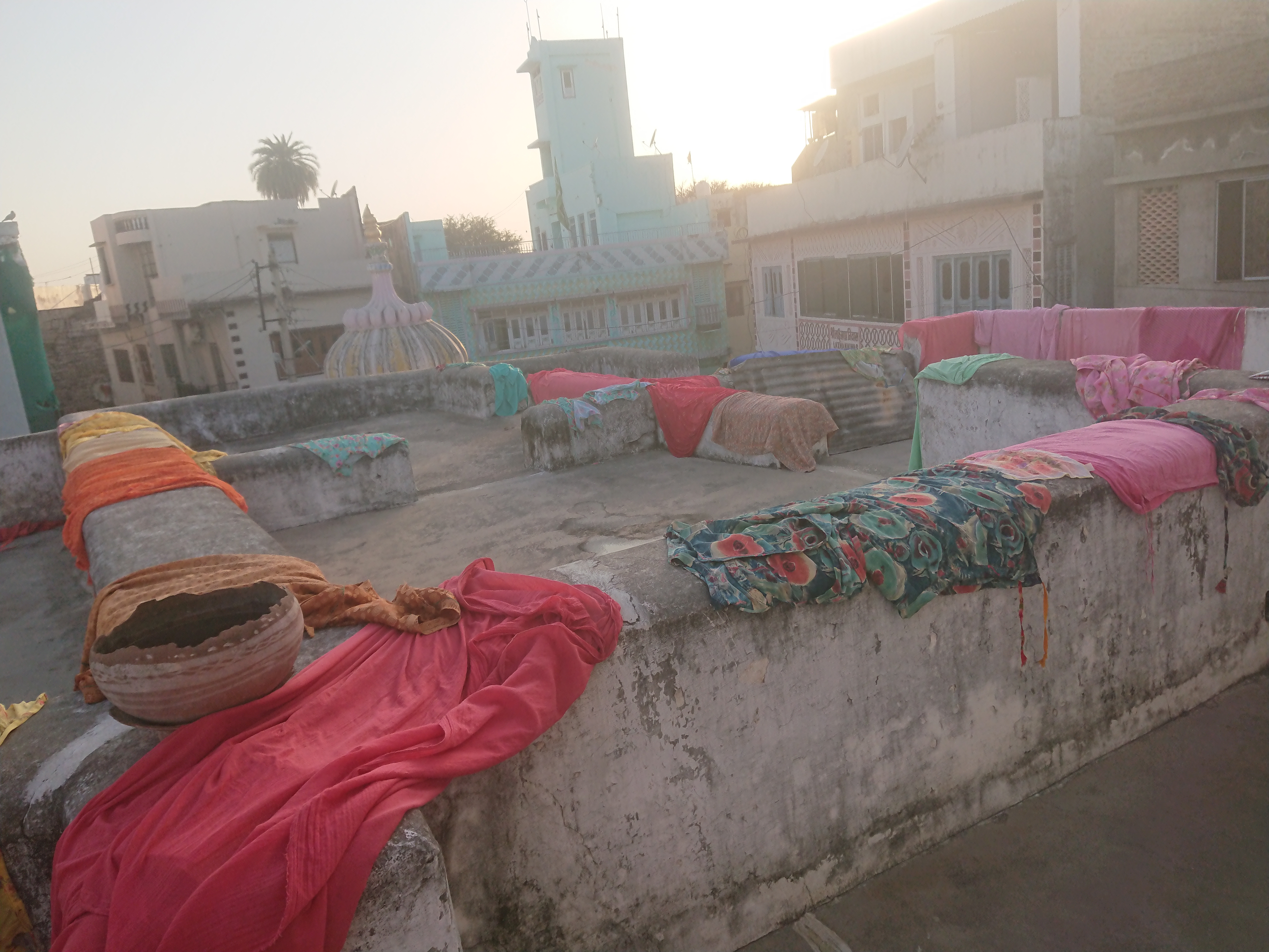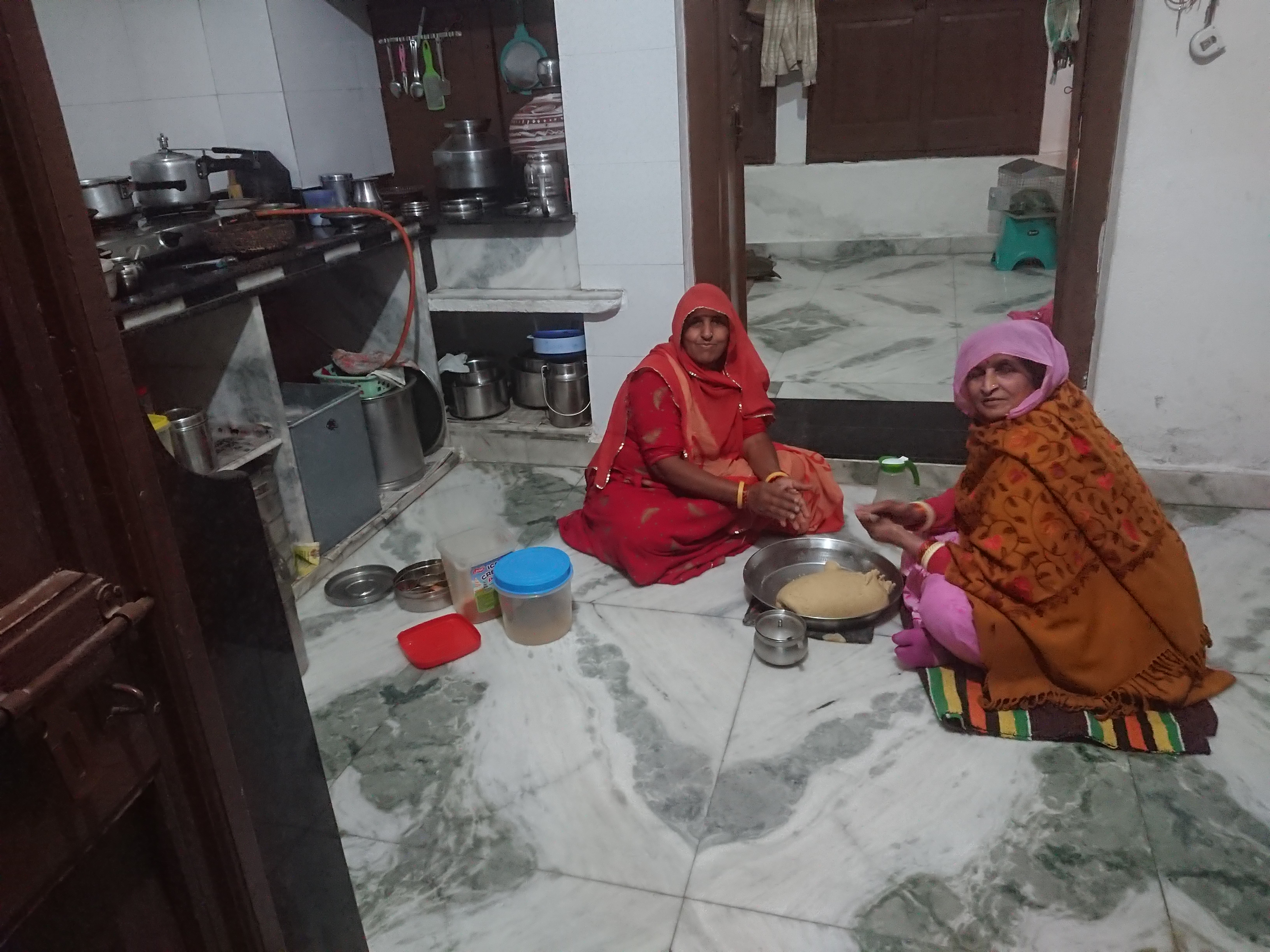 La maison est occupée par huit personnes : les grands-parents (le grand-père est décédé pendant mon séjour[2]) et la famille de leurs trois fils. La famille de l’aîné vit à Udaïpur, mais Naveen, qui s’occupe de la ferme, vient vivre ici pour de longues périodes, toujours accompagné de sa femme ou de sa mère. La femme du fils qui travaille à la carrière de marbre est décédée il y a deux ans ; il habite ici avec ses deux fils, Dashrath et Navdeep, qui s’occupent de l’élevage à la ferme. Le troisième fils gère l’épicerie-crémerie avec sa femme, sa fille et son fils.