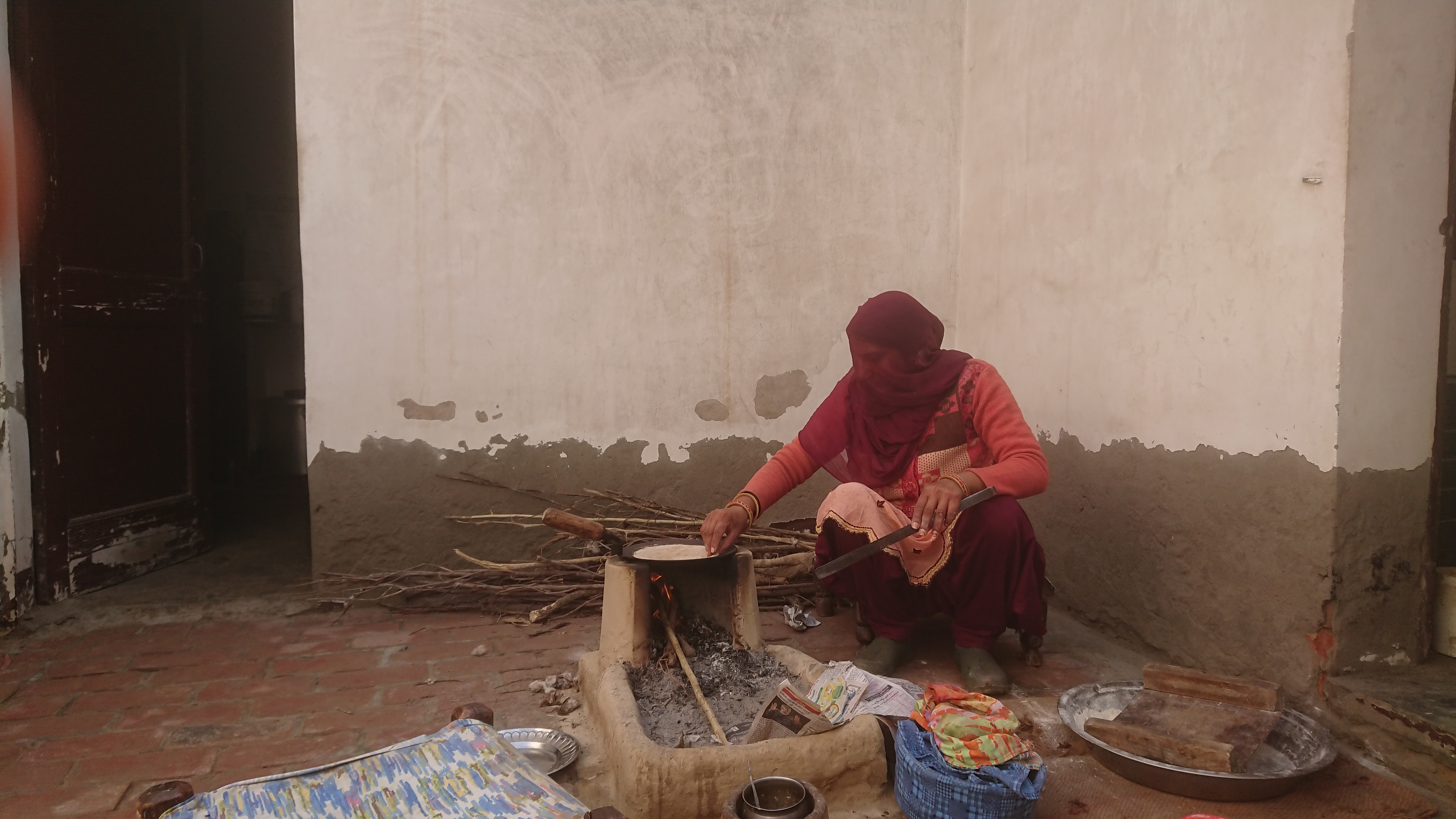 La cuisine se fait à l’air libre, sur deux foyers à bois maçonnés sur trois côtés, avec une ouverture extérieure. L'un est dans la cour intérieure, l’autre à l’extérieur, côté soleil levant.