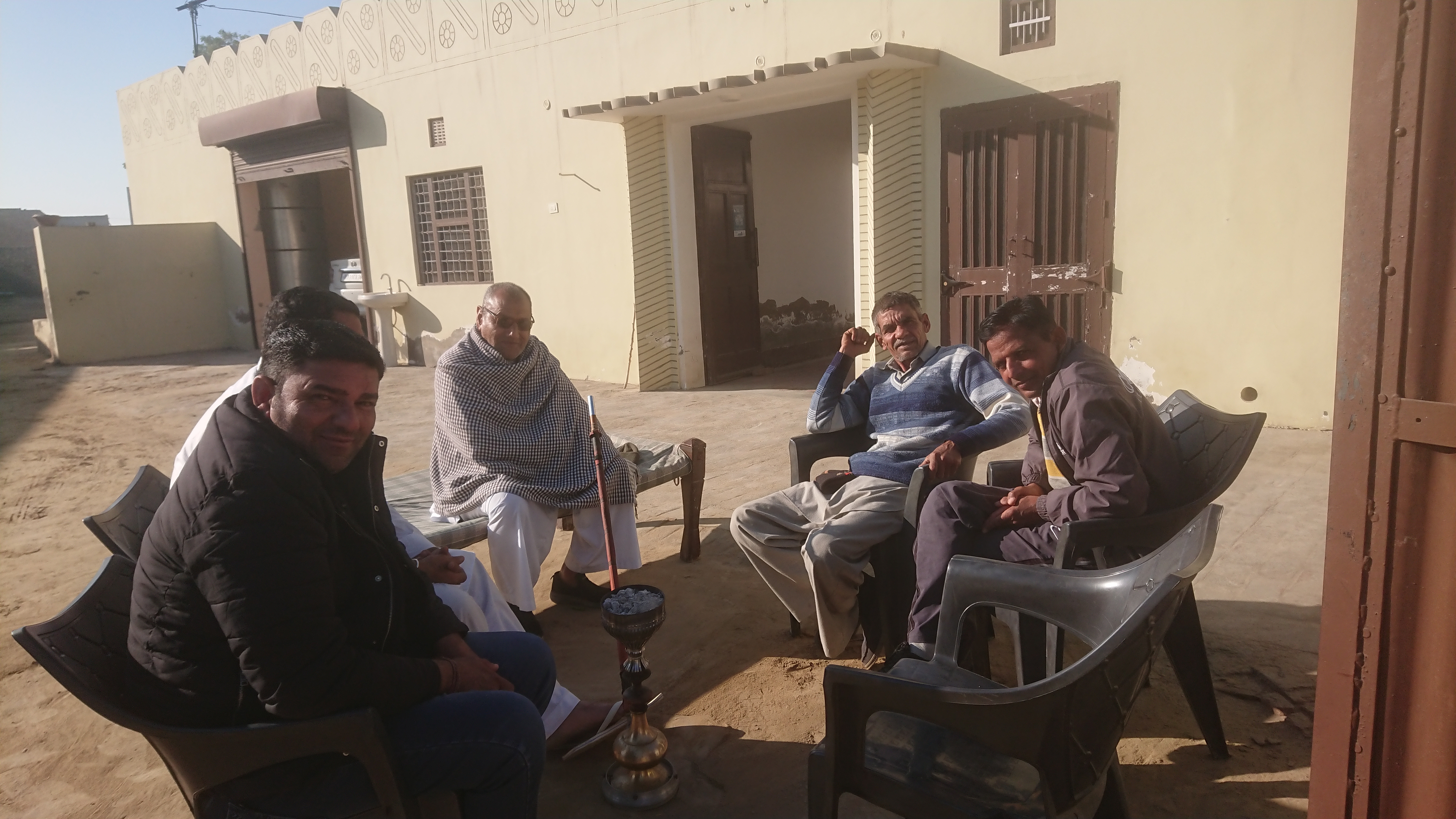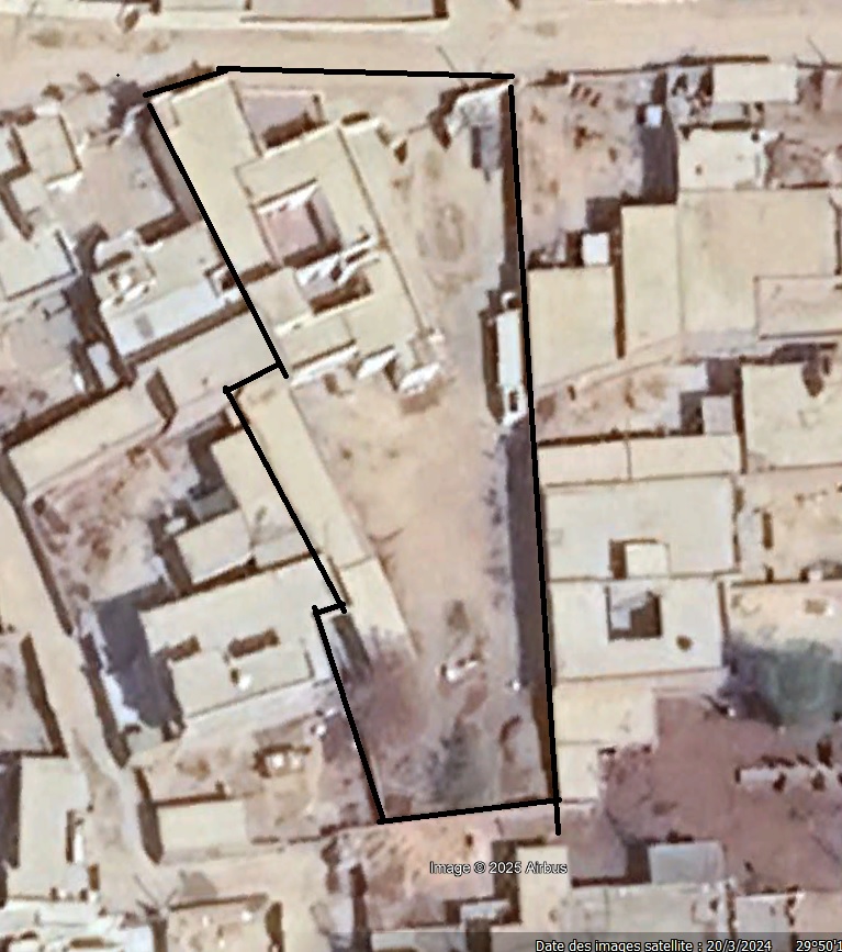 Placée sur le bord d'un terrain d'environ 1500 m² pour 250 m² habitables, la maison[1]est organisée autour d’une cour intérieure, avec trois portes donnant sur l’extérieur et une annexe mitoyenne mais indépendante, composée d'une chambre et d'une salle de bains privative : c’est là que j’étais logé et où se tient, le soir, la veillée hookah[2].
